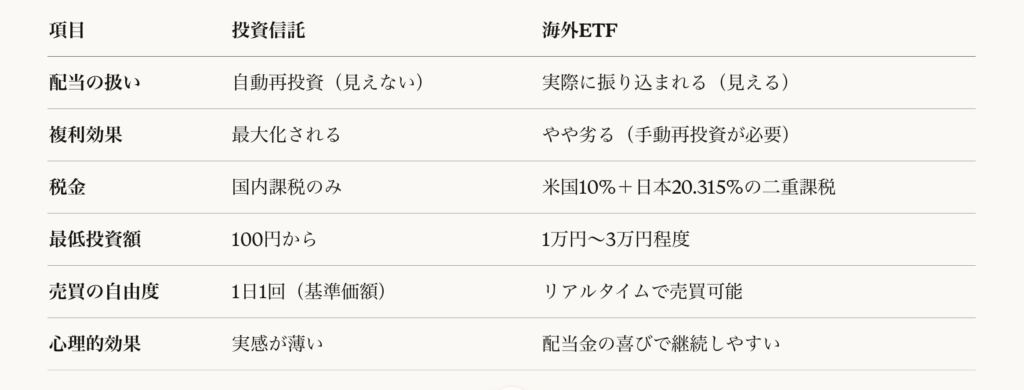投資信託 vs 海外ETF:どちらが正解?